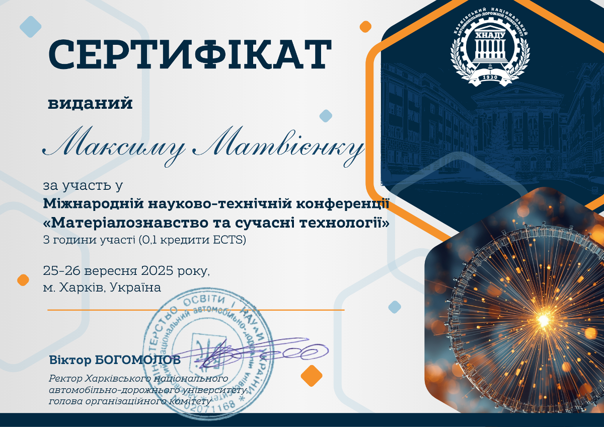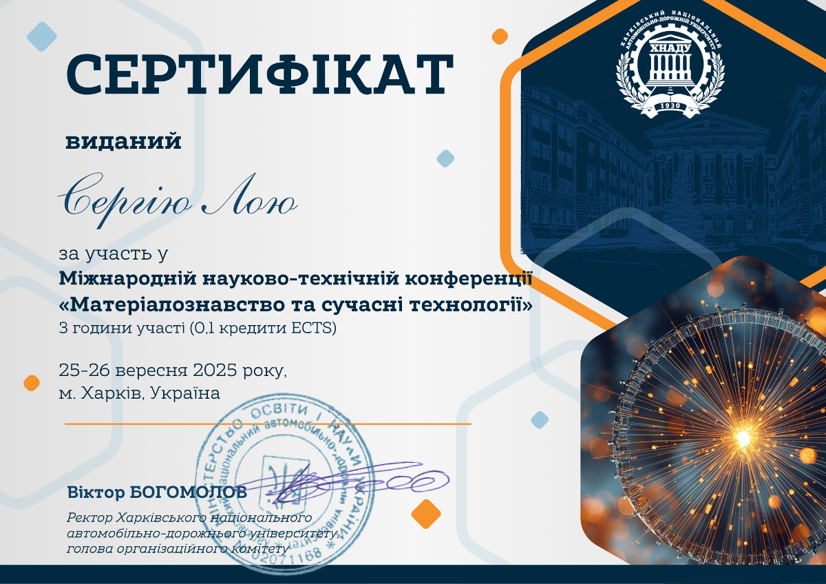 Сертифікати наукових керівників переможців І туру Всеукраїнського конкурсу студентських наукових робіт з галузей знань і спеціальностей Національного університету кораблебудування імені адмірала Макарова