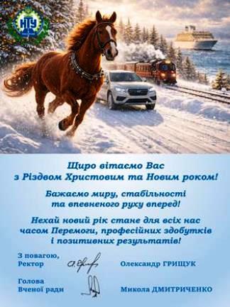 Бажаємо міцного здоров’я, наснаги до навчання та наукового пошуку, взаємної підтримки в колективі й віри в себе, у нашу країну. Нехай навіть у непростих умовах Новий рік буде сповнений світла, людяності, добрих новин і теплих моментів.