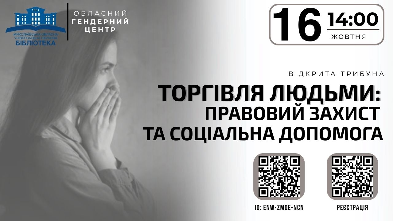 Друзі, 26 листопада о 16:00 запрошуємо до Обласного гендерного центру Миколаївська обласна універсальна наукова бібліотека, де в онлайн-форматі відбудеться дискусійна трибуна «Протидія гендерно-зумовленому насильству в умовах війни». Під час заходу фахівці Міжнародної організації «Фемілі Хелс Інтернешнл 360» (FHI 360) та Головного управління Національної поліції в Миколаївській області ознайомлять присутніх з чинним законодавством та заходами щодо запобігання гендерно-зумовленому насильству. 📲 Участь у заході підтверджується заповненням онлайн-заявки за покликанням: https://forms.gle/SpZn6xACD2Fry7w77 📲 Підключитися до заходу можна за покликанням: |