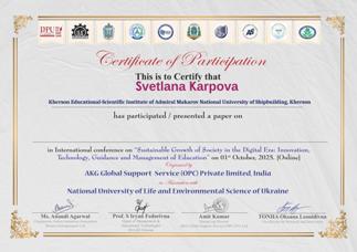| SUSTAINABLE GROWTH OF SOCIETY IN THE DIGITAL ERA Innovation, Technology, Guidance and Management of Education 01ST OCTOBER, 2025 Conference Proceedings |