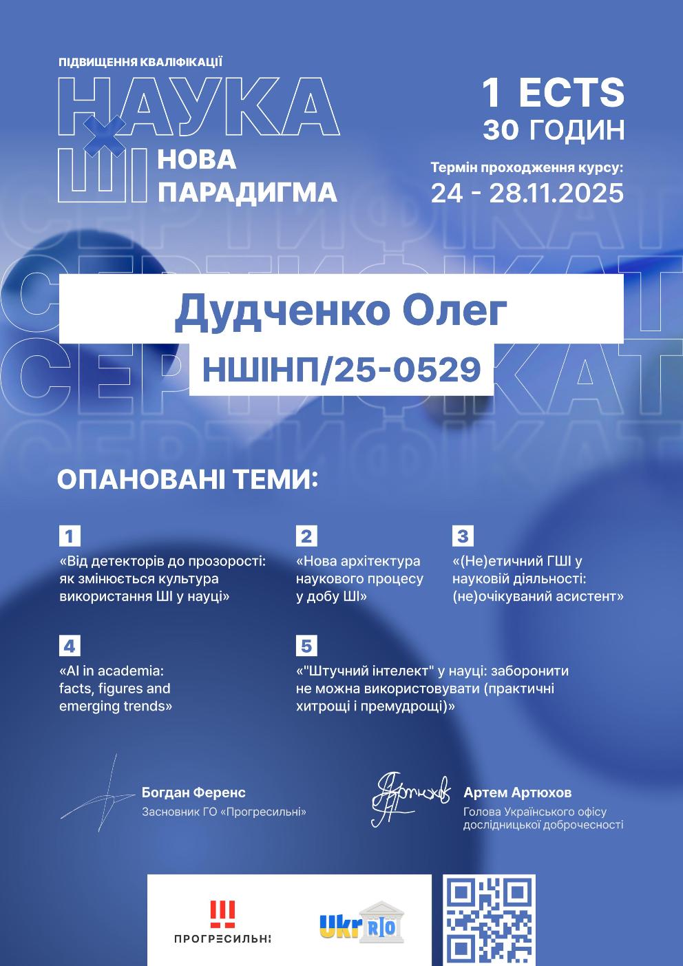 Сертифікати наукових керівників переможців І туру Всеукраїнського конкурсу студентських наукових робіт з галузей знань і спеціальностей Національного університету кораблебудування імені адмірала Макарова